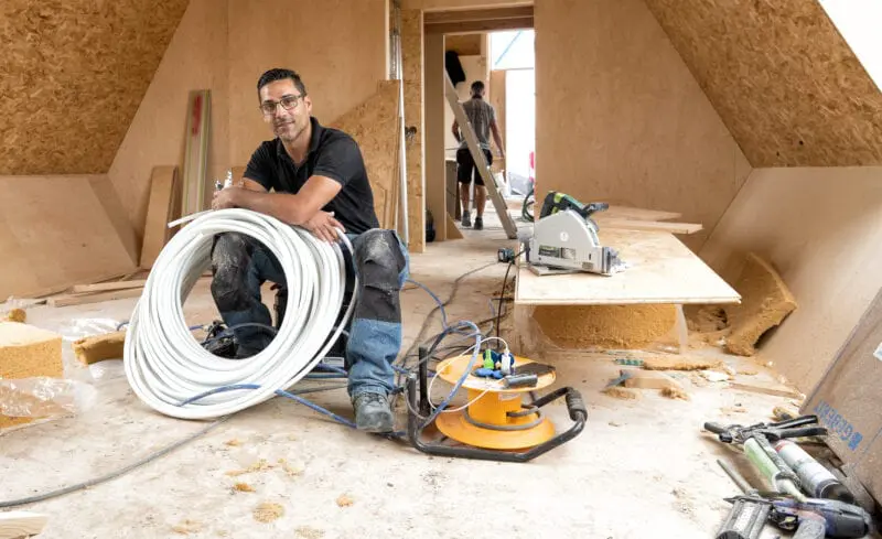 In Installatie 2.0 hebben we één nieuwe rubriek: dicht op de huid. Eén grote foto, van een installateur die met zijn voeten in de klei staat. En trots is op zijn vakwerk. Zo ook installateurszoon Joni Fleischer. Onze fotograaf Johan van der Wardt trof hem in een driehoekige houtskeletbouwwoning. All-electric warmtepomp, balansventilatie, vloerverwarming, sanitair. JF Totaaltechniek voert uit wat hij zelf vanaf de eerste schetsen heeft uitgedokterd.