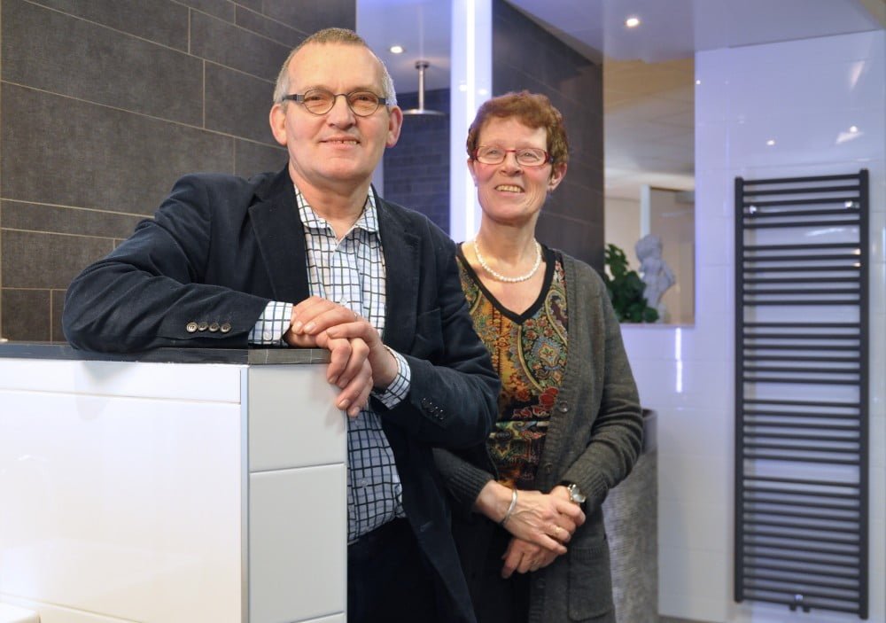 Een opvolger hebben ze nu nog niet. “Ik maak me er niet druk over”, zegt Herman. “Ik ben op zoek naar iemand die gelijkelijk aan de zaak wil overnemen. Tot die tijd verslapt de aandacht voor de zaak niet. We zijn continu bezig. Elke keer weer investeren, iets veranderen of verbouwen. Loopt iets niet, dan halen we het na tijdje weer weg. Op dit moment proberen we de badkamers zo compleet mogelijk te maken. Klanten krijgen zo een beter beeld van de sfeer in de ruimte. Je moet zorgen dat de showroom up-to-date is, anders lopen klanten een rondje door de zaak en vertrekken weer. Verrassen en meegaan met de nieuwste innovaties en ontwikkelingen, goed kijken naar trends zoals bijvoorbeeld kranen uit de muur en gladde platen op de wand. Of het ‘bad eruit en douche erin’-systeem voor hulpbehoevende mensen. Veranderen is een continu proces. We zijn dan misschien niet meer de jongsten, maar we zijn nog net zo enthousiast als toen we begonnen met de zaak”, zegt Willemien.