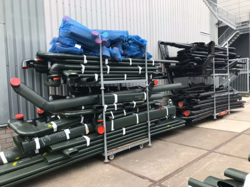 Wanneer het tekenwerk kraakhelder is, is het op maat maken van de in te storten ventilatiekanaal de volgende stap. Hier worden de kanalen voorzien van de juiste bochten, en gecodeerd per woning klaar gelegd voor just-in-time-levering. Lang leve de digitalisering van de bouw.