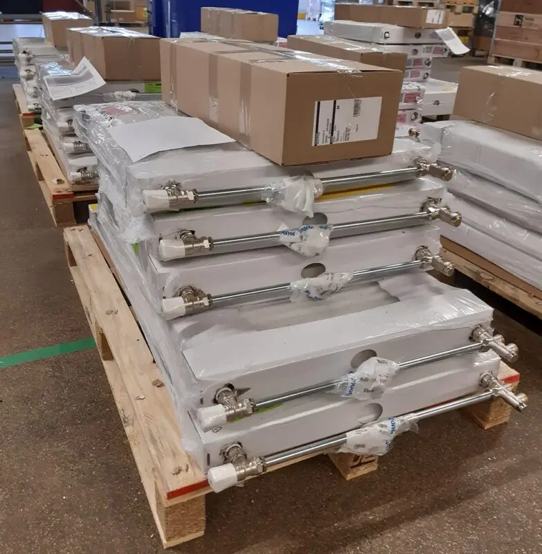 De radiatoren en aansluitmaterialen kun je in het werk monteren: dat kan ook van tevoren. Een klus die zeker in serie veel voordelen oplevert.