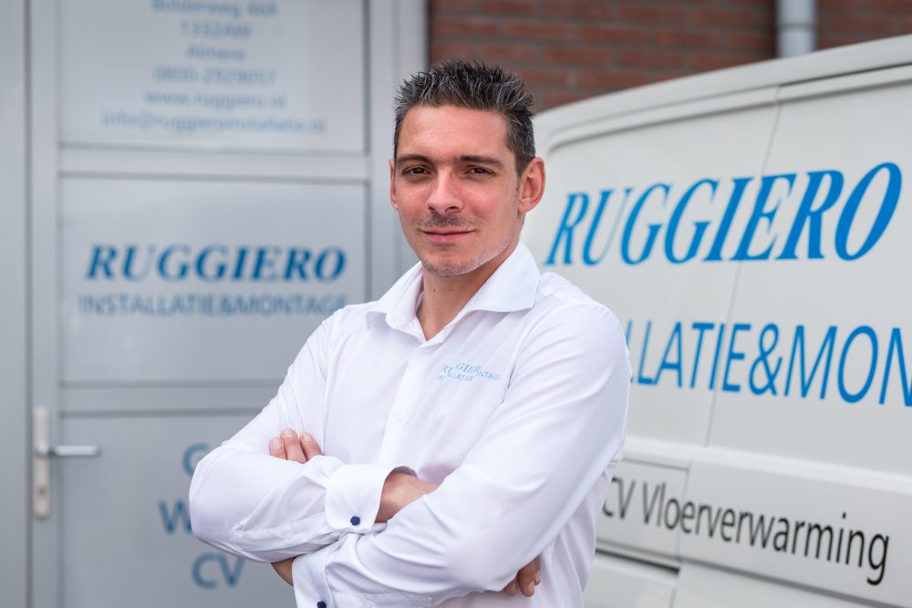 Vijf jaar geleden begon Riccardo Ruggiero in Almere voor zichzelf als allround installateur met een focus op duurzame installaties. Kort daarna sloeg de crisis toe, maar Ruggiero ondervond er weinig hinder van: “Ik dacht: het kan alleen maar beter worden.”