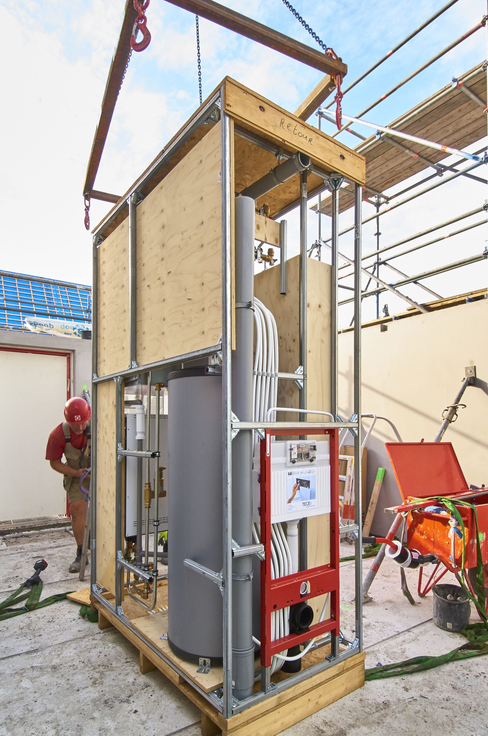 Voor nieuwbouw zijn er al verscheidene bedrijven die prefab modulen vervaardigen. Zo heeft Löwik Installatietechniek twee prefab modules ontwikkeld. Een installatiemodule voor op de begane grond en een leidingschachtmodule voor de 1e verdieping. De beide modules zijn gebouwd met het TECEprofil voorwandsysteem en zijn beiden voorzien van het TECE inbouwreservoir.