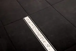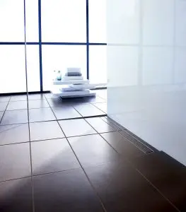 Een douchebak op een sokkel of half doorgesneden tegels aan de zijkant en op de vloer is niet fraai! Door de douchegoot kan de vloer in de badkamer doorlopend worden gemaakt. Zo ontstaat een strak afgewerkte vloer in de hele badkamer. Dat is esthetisch het mooist en geeft bovendien een ruimtelijk effect. Op een klein oppervlak is dat ook ideaal. In vergelijking met een centrale afvoer heeft de lineaire afvoer een belangrijk voordeel: zelfs in de douche kunnen grote tegels worden gelegd zonder dat die diagonaal moeten worden afgesneden, om het water te laten aflopen.