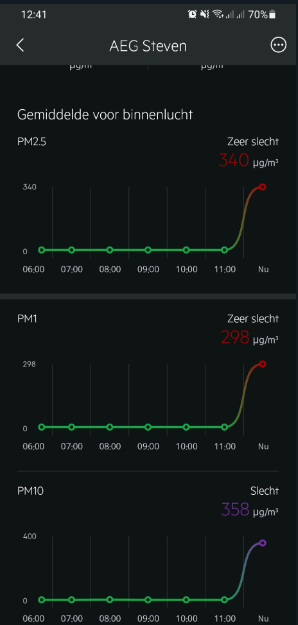 En als je dan toch een hippe luchtreiniger in huis hebt is het natuurlijk rete-interessant om te kijken wat dit doet met je luchtkwaliteit. En dit is, zelfs met een goed ventilatiesysteem én de afzuigkap aan, even schrikken.