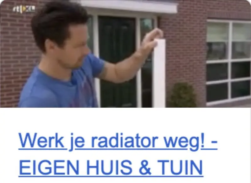 De woonkamervloer, weten we, zal over een half uurtje voorzien zijn van een kekke PVC-laag. En de radiatoren, voorzien van een frisse laag verf, worden weggewerkt in vernuftige kasten, ‘met sleufjes zodat de warmte er uit kan’. Dit seizoen vervangen we ook meteen alle kozijnen door prachtige nieuwe kunststoffen varianten, met roosters en al, én voorzien van de hipste raambekleding.