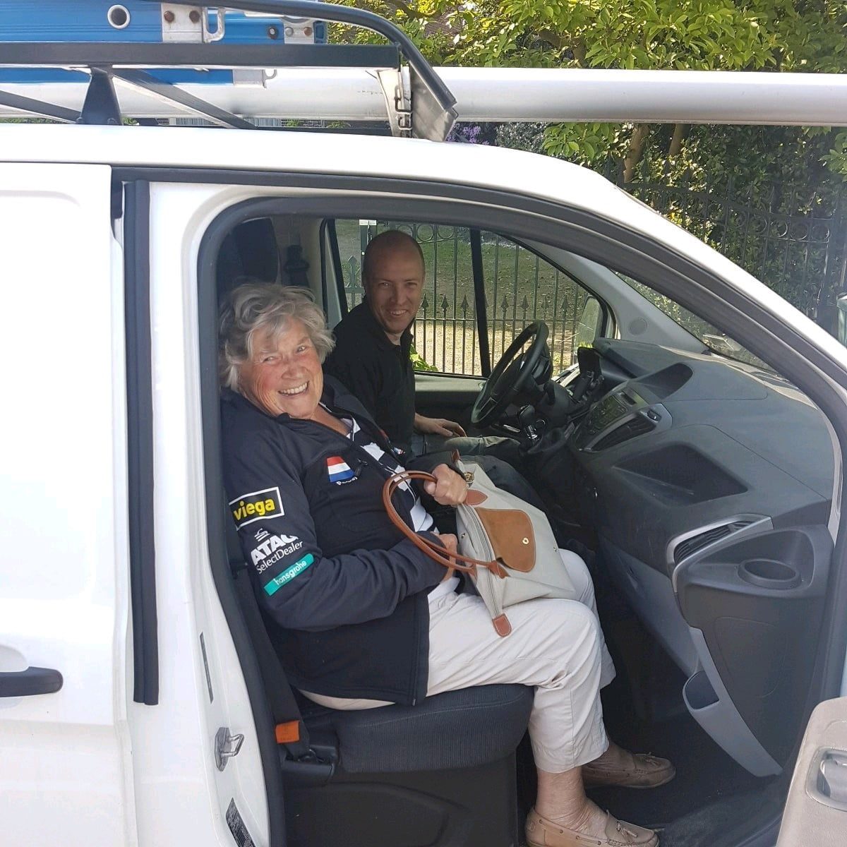 NB: De bovenste foto en hier rechts bij deze blog: dit is Mevrouw van Hapert. Een superfan, die idolaat is van onze bussen die bij haar voorbij rijden. En we hebben haar laatst in het zonnetje gezet. Een eigen vest met haar naam erop, meerijden met de bus van Martin door haar Valkenswaard en daarna een bakje koffie ter afsluiting. Kleine dingen. Maar die maken het verschil 😉