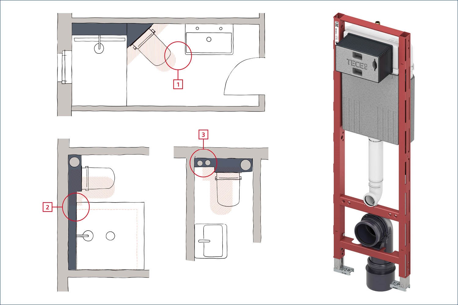 Weinig ruimte? Speciaal voor kleine badkamers en toiletten of met schuine wanden en daken, lastige hoeken of schachten, introduceert TECE praktische oplossingen die ruimte besparen en de installatie vereenvoudigd. Zoals het nieuwe extra smalle wc-inbouwreservoir, een extra laag wc-inbouwreservoir en de nieuwe smalle scheidingswanden voor sanitaire ruimten. Al deze oplossingen creëren meer ruimte en bieden meer mogelijkheden.