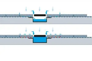 Wanneer zich onder de tegels lekwater verzamelt, moet er voor het afvoeren daarvan een extra laag worden aangebracht.