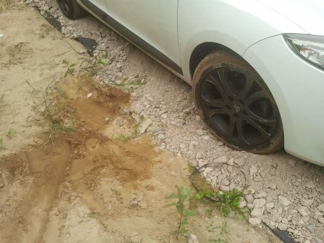 De bouwplaats had een puinweg, waarover de vrachtwagens ‘just-in-time’ –zo gaat dat bij lean-bouwen- de hsb-elementen aanleverde. De verslaggever parkeerde zijn bolide dan ook naast de puinweg; ruim baan voor het strak geplande productieproces. Puinwegen liggen er niet voor niets, en na afloop van de interviews stonden de wielen te tollen, zonder dat er iets in beweging kwam. Met de voeten én wielen in de klei.
