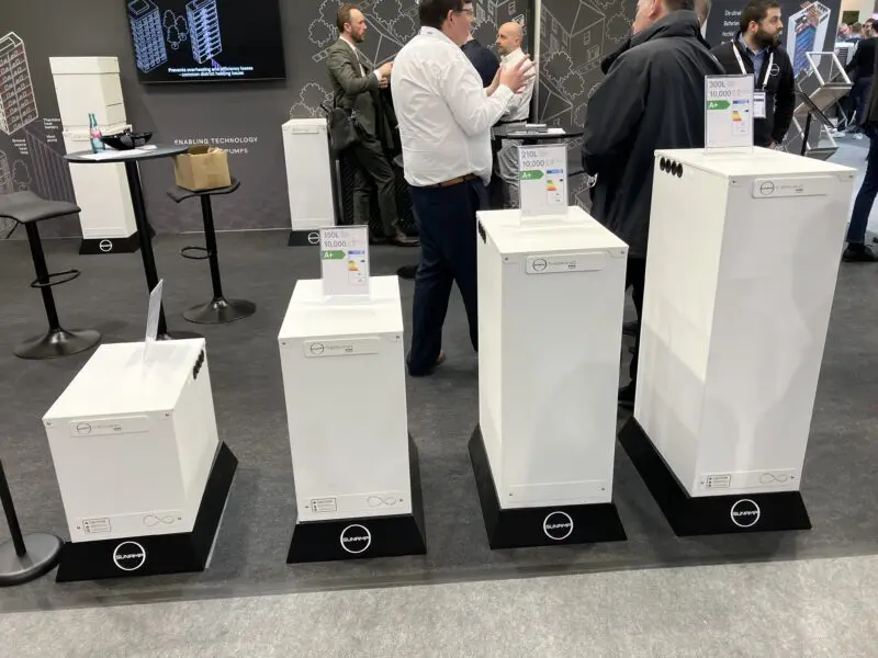 De compacte thermische batterij van Sunamp uit Schotland komt ook onder eigen naam naar Europa. Op de ISH werd het voorraadvat met faseovergangmaterialen gepresenteerd. Ook het Nederlandse Triple Solar gaat de techniek toepassen als ruimtebesparend opslagmedium bij haar concept met PVT-panelen.