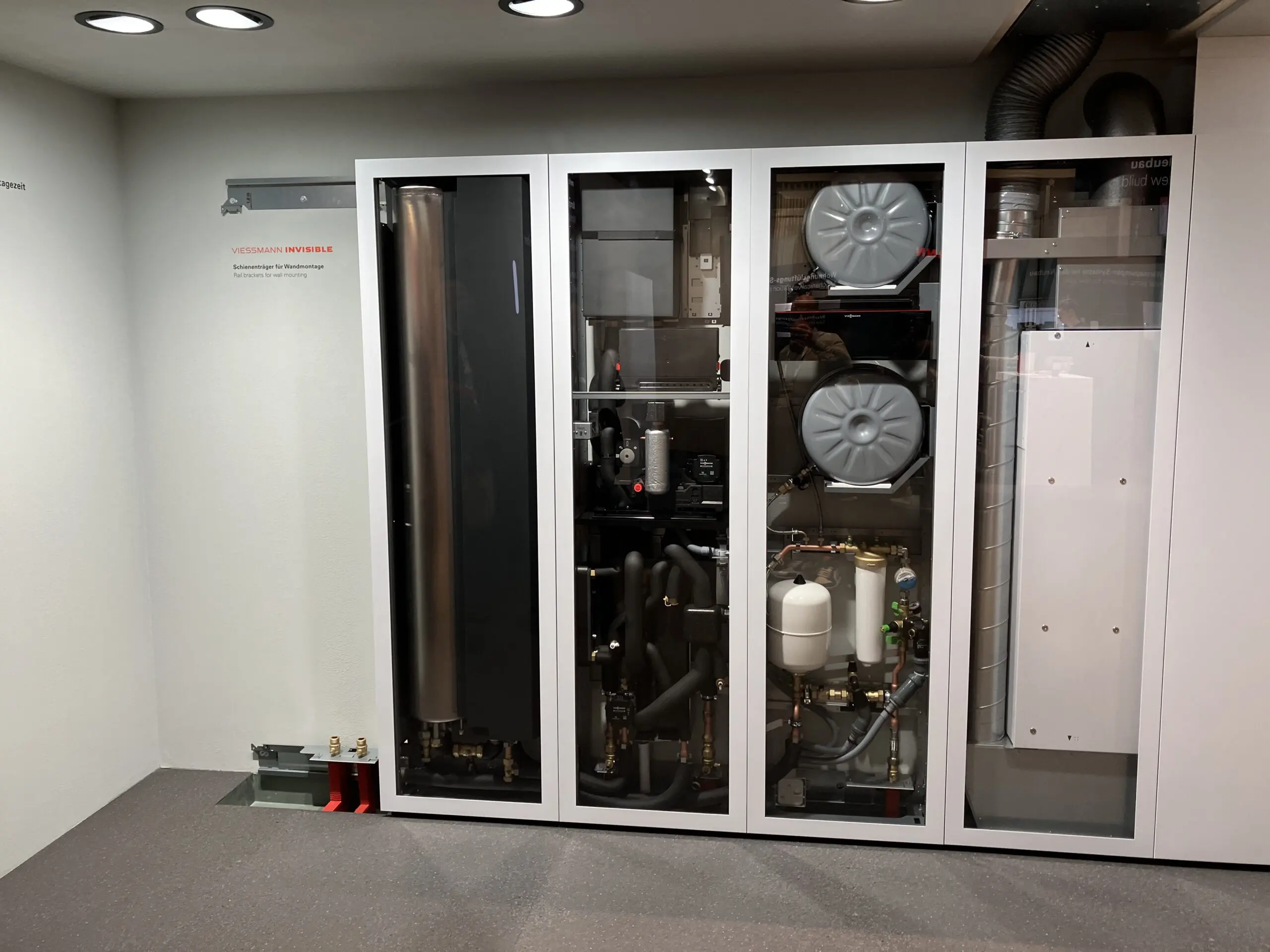 Viessmann Invisible is één van de grote eyecatchers op de ISH in Frankfurt. De Duitse warmtepompspecialist speelt hiermee in op de groeiende vraag naar modulaire bouw en ruimtebesparende plug & play concepten voor de nieuwbouw. In plaats van een techniekruimte waar grote installaties staan, volstaat een kastenwand die meer weg heeft van een (bij)keuken dan een installatieruimte. En álle techniek past erin.