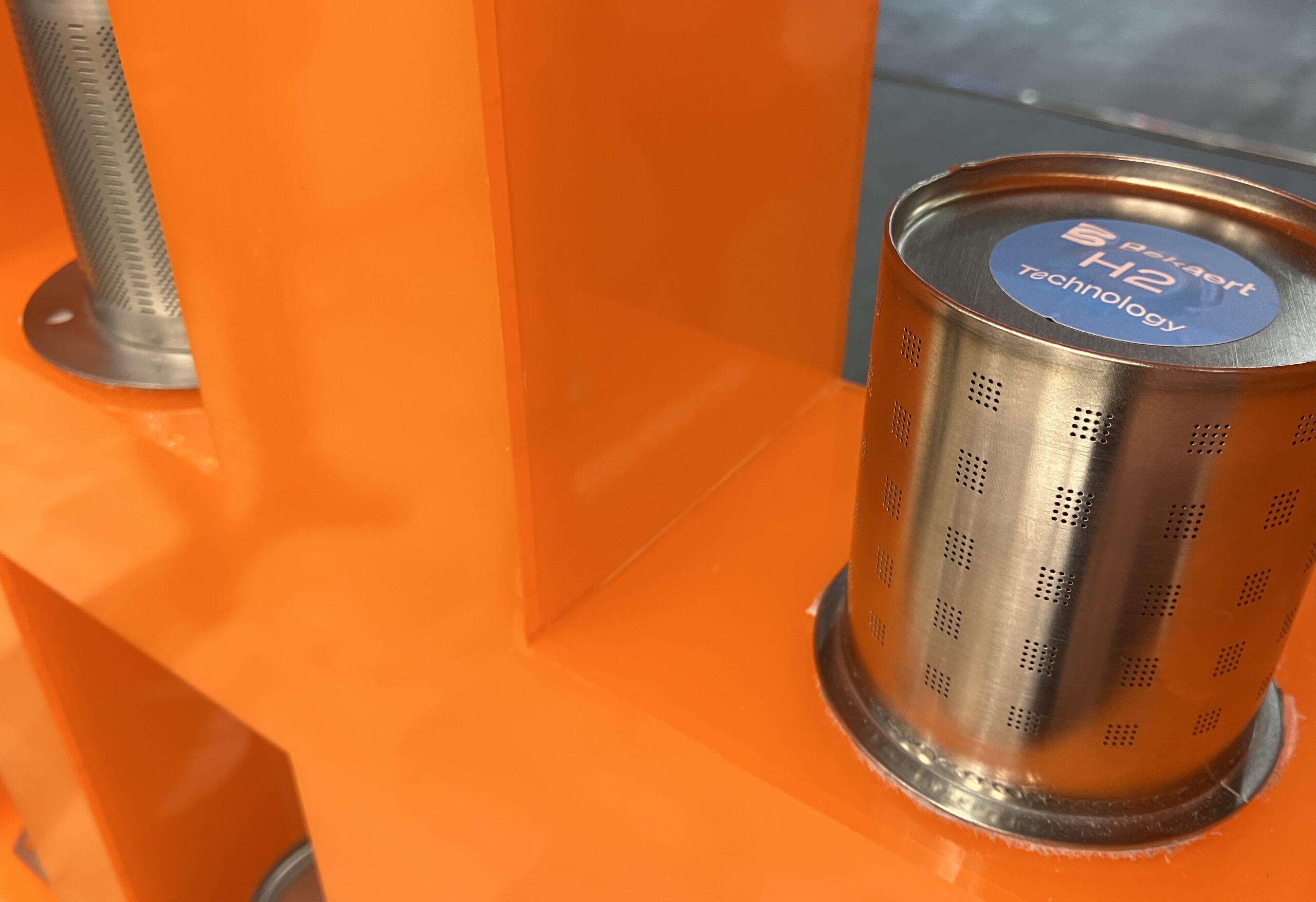 Op de ISH zette Bekaert zijn verschillende branders netjes in de etalage, met voor de cilindrische branders ook de waterstofbrander erbij. Het verschil tussen een brander voor waterstof en eentje voor aardgas werd hierdoor meteen duidelijk. In de brander voor waterstof zitten minder gaatjes, wat resulteert in een hogere druk, de verbranding vindt dus plaats minder dicht op het dek, wat het risico op inslag minimaliseert.