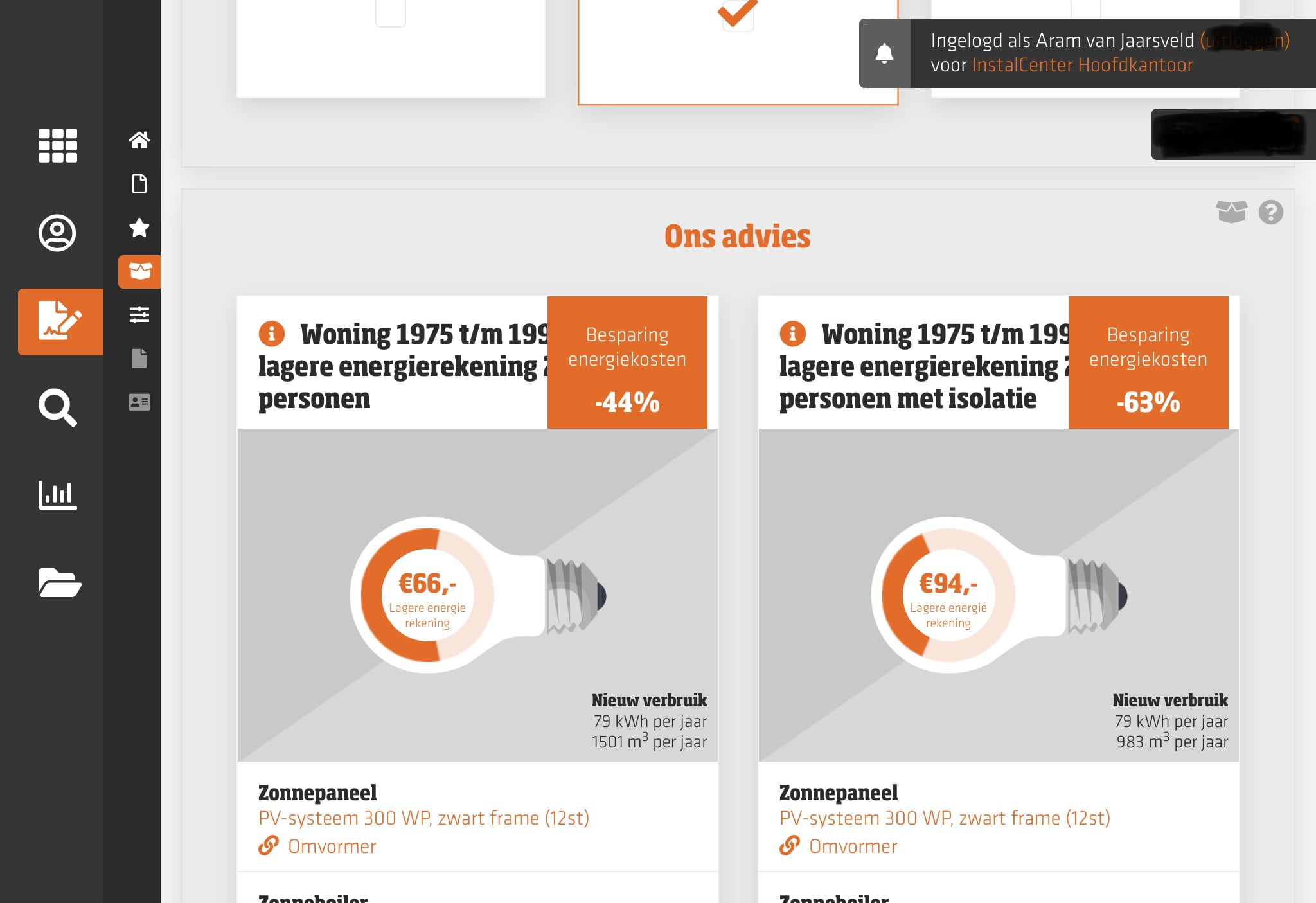 De adviestool is een exclusieve tool die beschikbaar is voor InstalCenter ondernemers. De tool is beschikbaar als webapplicatie en overal, waar internet is, op diverse devices beschikbaar. Via een dashboard kunnen gegevens gemuteerd of worden aangemaakt.