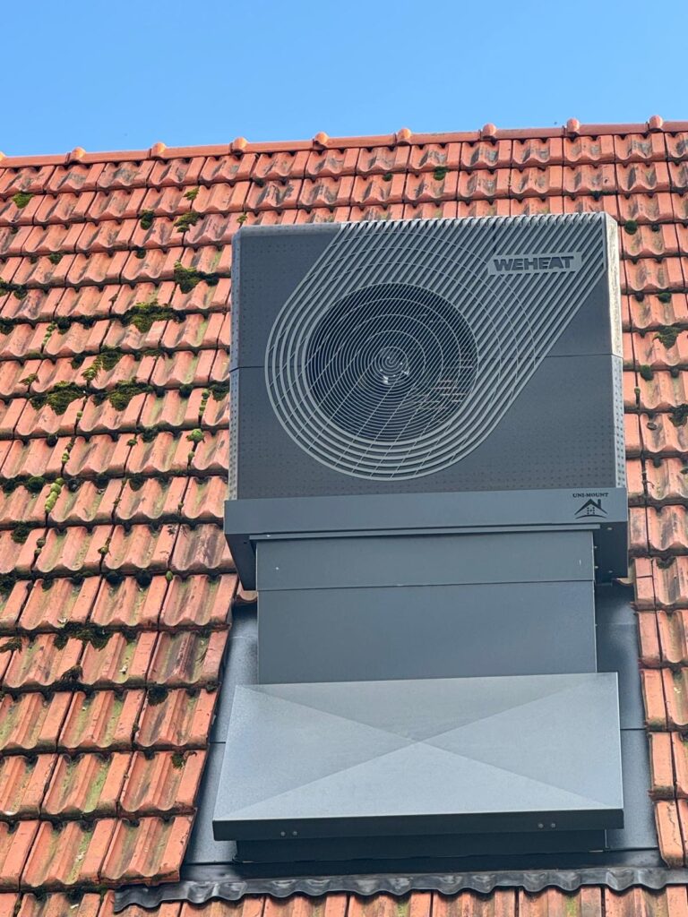 De variatie aan warmtepomptypes zorgt er ook voor dat er nieuwe dakopstellingen komen. Unimount heeft haar concept met serviceluiken ook losgelaten op de nieuwe warmtepompen van onder andere Bosch en Weheat.