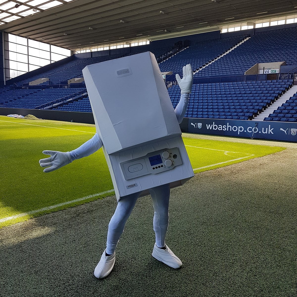 Als klap op de vuurpijl de meest briljante cult-mascotte van het internationale voetbal: The Boiler Man van West Bromwich Albion: een man in een cv-ketel-pak die een vol stadion opwarmt voor de wedstrijden.