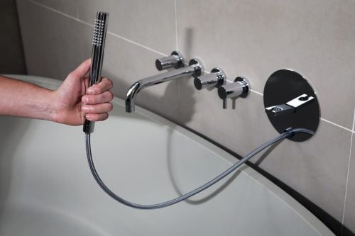 Nooit meer die irritante handdouche-slang die in je bad bungelt. Luca Sanitair heeft een simpele maar doeltreffende oplossing voor die slang die vaak in de weg zit als je in bad zit. De Roll-in-shower, deze maand op de markt via het dealernetwerk van Luca Sanitair, herbergt 125 cm doucheslang in de muur. Het armatuur, in chroom, zwart en geborsteld nikkel verkrijgbaar, is eenvoudig te bedienen: door op de ophanghouder te drukken glijdt de slang automatisch terug in de muur. Zoals een stofzuigersnoer kan hij er op elke gewenste lengte uitgetrokken worden. Ook de inbouwdiepte valt mee: 70 mm.
