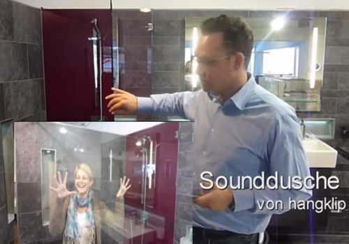 Op de beurs Glastec in Düsseldorf liet het Duitse bedrijf Glas Hetterich zien, dat luidsprekers onzichtbaar in glazen douchewanden kunnen worden toegepast. Na geïntegreerde verwarming een nieuwe stap in de technische ontwikkeling. De benodigde elektronica voor het overdragen van het geluid naar het glas is geïntegreerd in de bevestigingsprofielen. De douche-, scheidings- of achterwand fungeert als luidspreker. Aansturing van de apparatuur kan via bluetooth. De vrijstaande glazen luidsprekers produceren geluid in 360 graden. Dit betekent dat de hele badkamer kan worden voorzien van muziek.