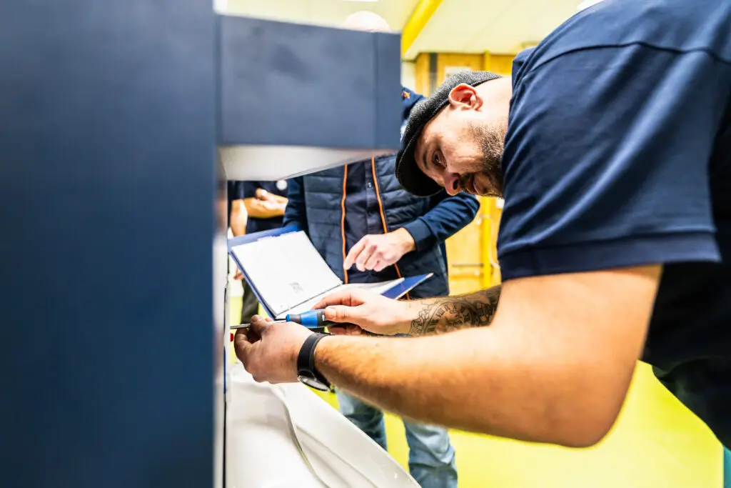 Naast installatie leren studenten ook producten demonteren en herstellen. Deze reparatievaardigheden dragen bij aan duurzaamheid – herstellen in plaats van vervangen – en vullen een belangrijk tekort in bestaande installatieopleidingen aan.