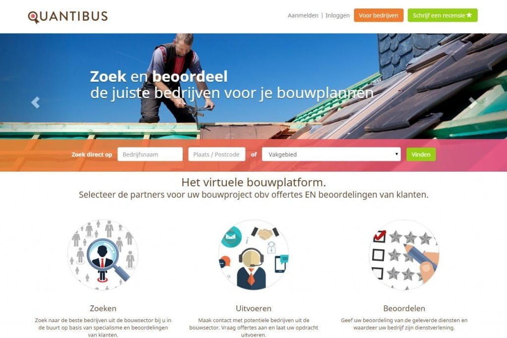 Installateurs en bouwers kunnen zich zoals Tripadvisor en Zoover laten vergelijken en reviewen. Quantibus ontwikkelt een platform en heeft via crowdfunding een investeringsbedrag van 172.500 euro bij elkaar gesprokkeld.