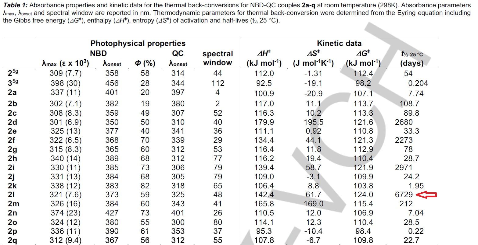 Wat deze ontwikkeling verder interessant maakt, is dat de opgeslagen energie zeer lang bewaard kan worden. In de experimenten is in een enkel geval zelfs een halfwaardetijd van 18 jaar gemeten. De halfwaardetijd is de tijd die het duurt dat de helft van het aantal moleculen teruggevallen is naar zijn oude staat. In alle overige gevallen echter, is de halfwaardetijd vele malen korter.