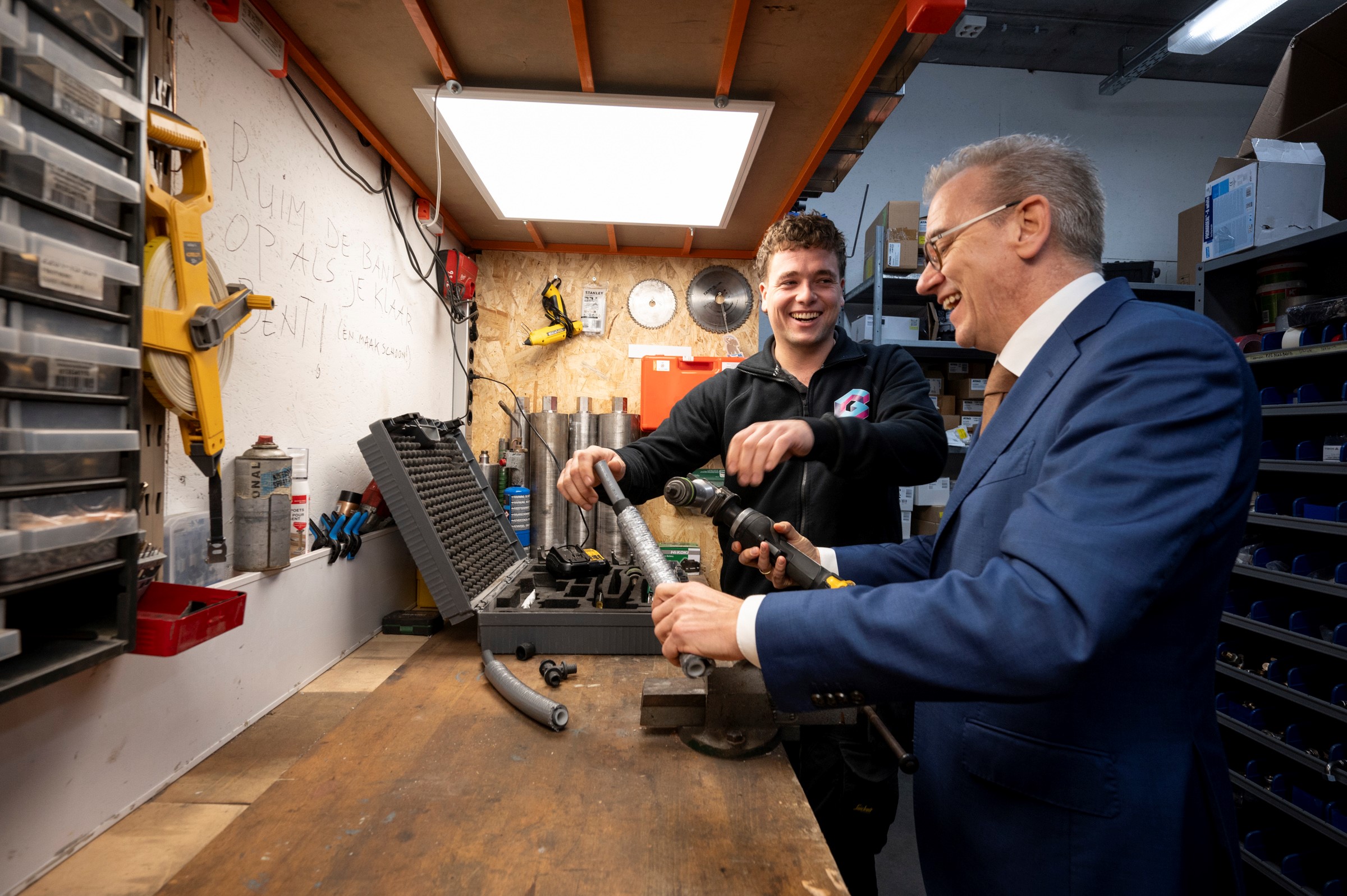 Bruins bezocht Gunst Warmtetechniek in Den Haag samen Techniek Nederland-voorzitter Doekle Terpstra. Dick Gunst is eigenaar van Gunst Warmtetechniek én hybride techniekdocent op het mbo. De minister was enthousiast over de manier waarop praktijkkennis en onderwijs elkaar vinden in dit bedrijf.