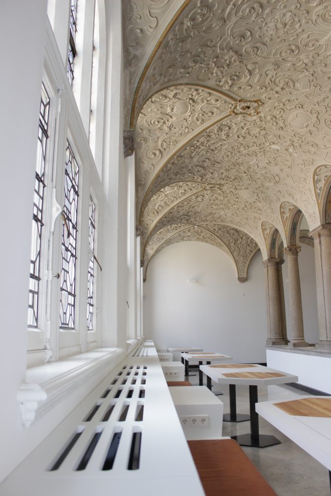 De Oude Bibliotheek is een opmerkelijk gebouw, met veel prachtige details zoals marmeren elementen en rijkelijk versierde plafonds. Een belangrijke eis bij alle aanpassingen was dan ook dat al deze details behouden en zichtbaar zouden blijven. De installaties moesten dus zoveel mogelijk onzichtbaar blijven.