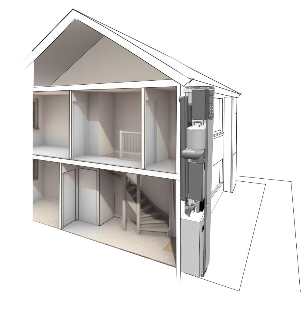 Het concept heet Energy Bar. De toren staat buiten de geïsoleerde gevelschil, maar is wel constructief verankerd aan de verdiepingsvloer. In de kolom zijn (hybride) warmtepomp, ventilatie-unit met warmteterugwinning, buffervat en pv-omvormers opgenomen. Afhankelijk van de toepassing wordt in het concept een all-electric Enviline warmtpomp toegepast, of de hybride variant met HR-ketel. Omdat alle componenten zijn voorgemonteerd hoeft de installateur geen koudemiddelverbindingen aan te leggen. De kolom kan afhankelijk van het project architectonisch worden weggewerkt, waarbij de componenten uiteraard wel bereikbaar dienen te blijven.