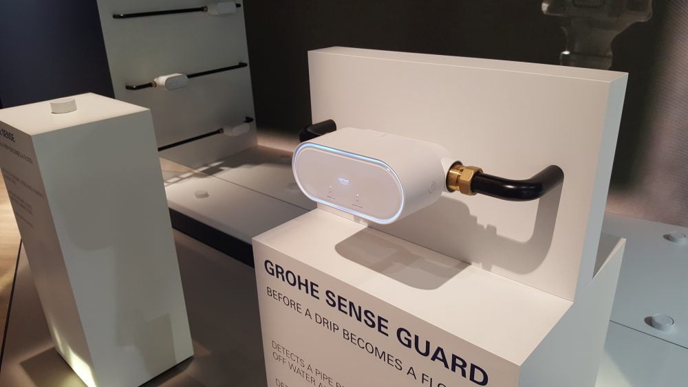 Een wateralarm dat bij een leidingbreuk of structureel druppende kraan automatisch de watertoevoer stopt, en de bewoner via de smartphone waarschuwt. Grohe introduceert op de ISH de Grohe Sense Guard, een afsluiter met sensoren die bijvoorbeeld op kwetsbare plekken geplaatst kunnen worden. Het apparaatje meet ondertussen ook nog temperatuur en luchtvochtigheid, en waarschuwt bewoners wanneer de binnenlucht te droog wordt. Daarnaast geeft de bijbehorende app inzicht in het waterverbruik.