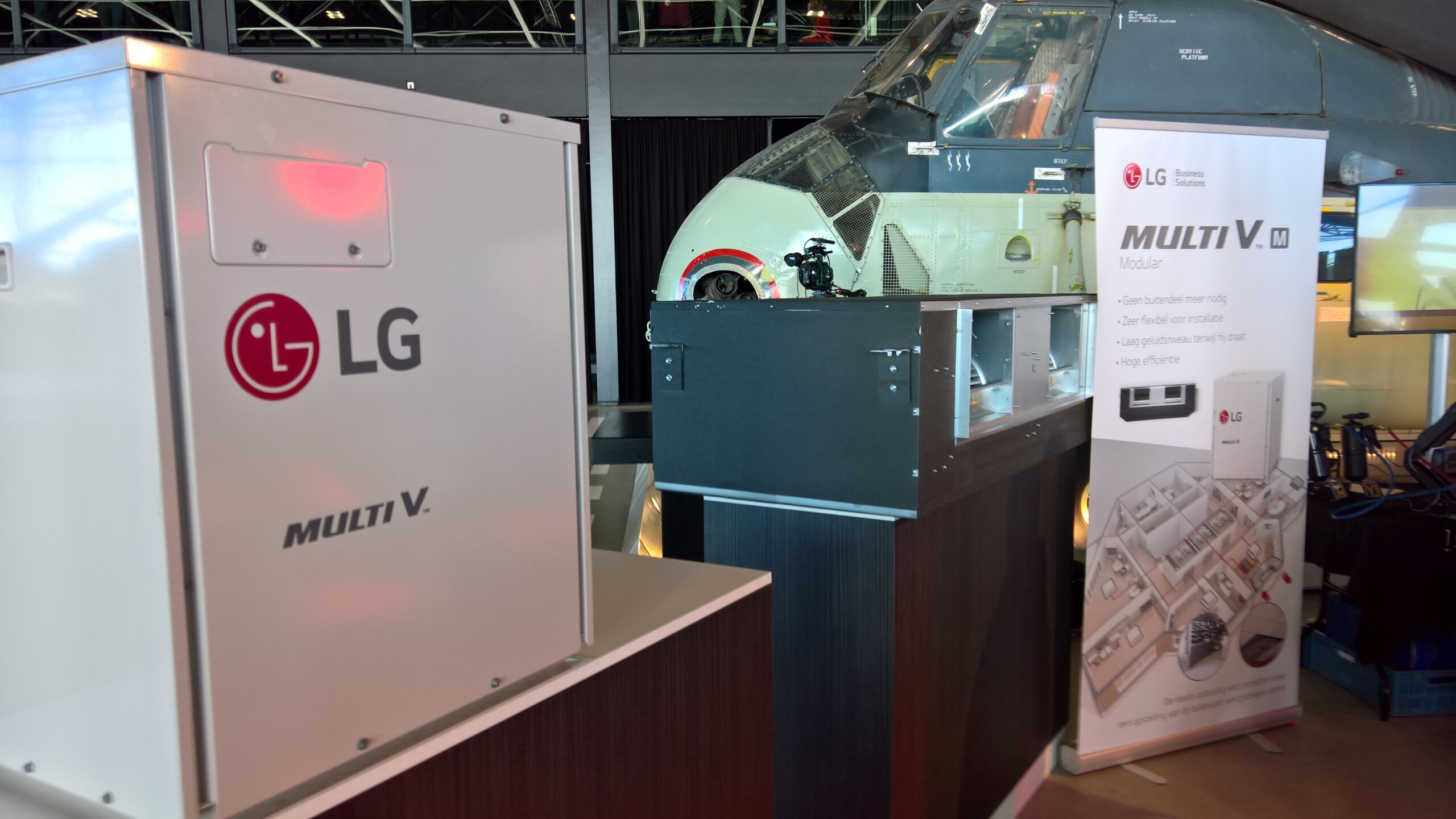 De Multi V Modular werd vorige week officieel gepresenteerd op de MCE-installatiebeurs in Milaan en deze dinsdag was het de beurt aan Nederland, waar de installatie getoond werd bij het LG/Centercon Kickoff Event in het Nationaal Militair Museum in Soest.