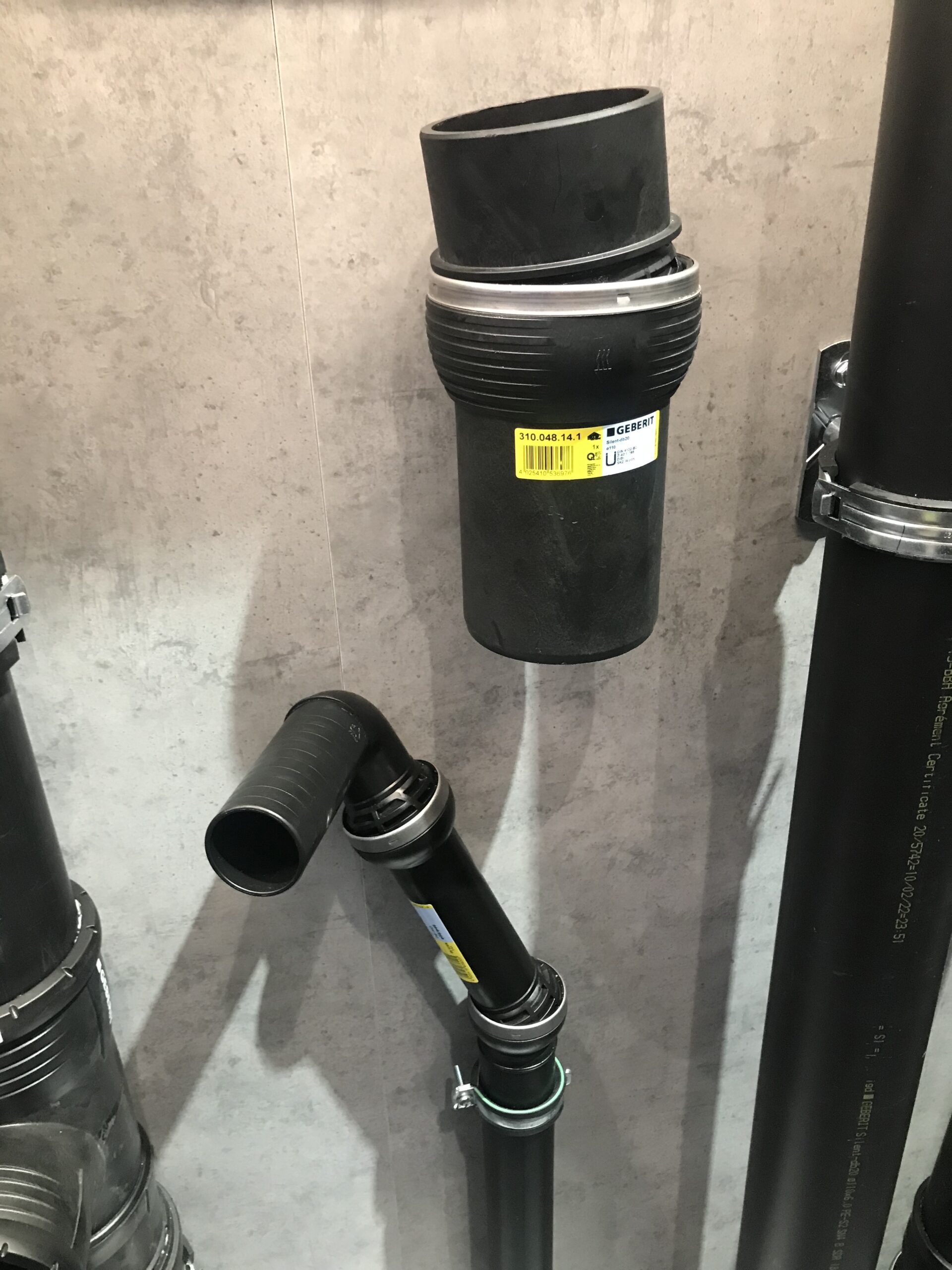 Geberit liet op de VSK nieuwe koppelingen zien voor het Silent-db20 afvoer systeem, de stille variant van de standaard kunststof afvoerleiding voor water. Deze techniek mikt met name op afvoeren die extra stil moeten zijn, denk aan hotels.
