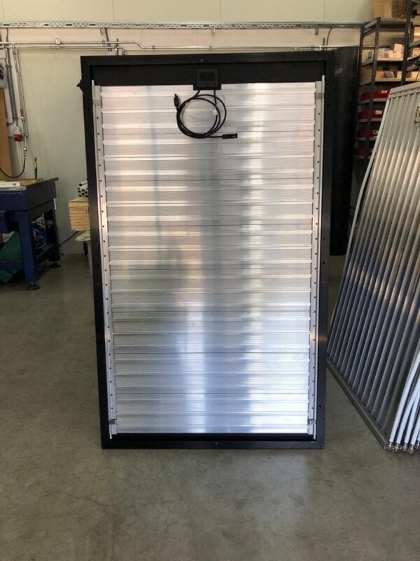 “Dat paneel hebben we nu verbeterd”, zegt Rik Boon, van AFS Solar uit Roden. “Voorheen bestond het uit verlijmde platen, maar nu is het een geëxtrudeerd paneel, waardoor er veel meer druk op kan staan.” Dit nieuwe paneel is getest op 10 bar. Boon noemt de panelen daarom ‘bulletproof’: panelen waar per ongeluk even teveel druk op wordt gezet, gaan niet kapot.