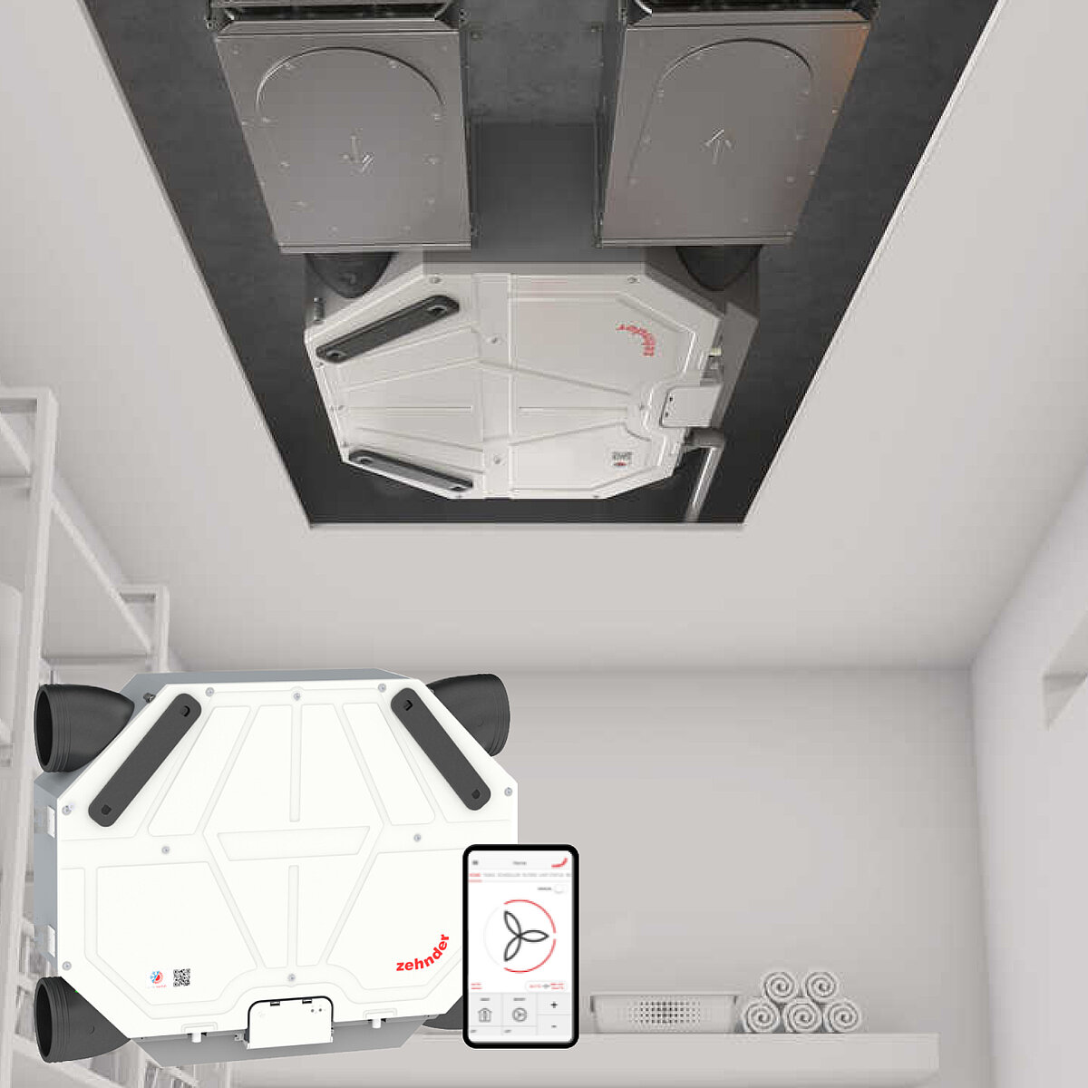 Een unit voor balansventilatie met warmteterugwinning neemt stevig wat ruimte in. Zehnder heeft nu een ruimtebesparende oplossing die je onder het plafond kunt plaatsen. Daarmee worden kostbare vierkante meters bespaard.