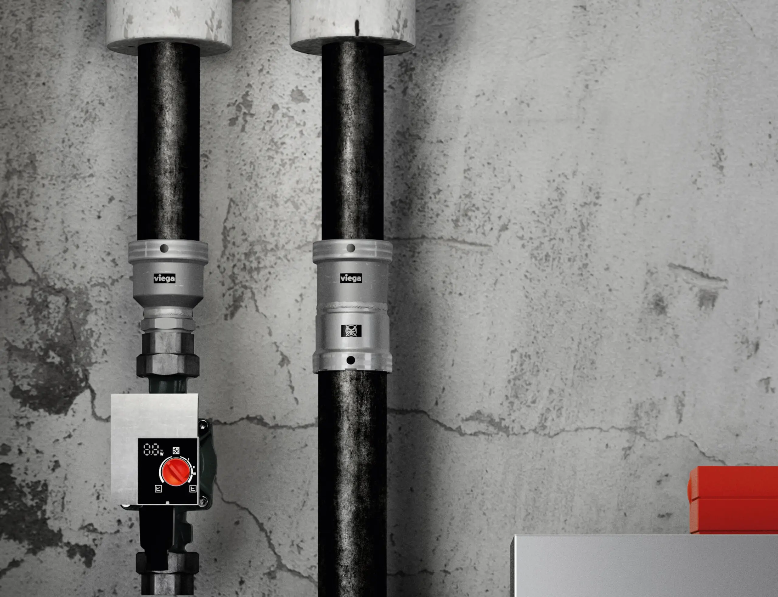 Bij de renovatie van deze installaties is het lassen een kostbare, tijdrovende en gevaarlijke zaak. Bovendien is het lassen niet het specialisme van de installateur. Speciale draadfittingen zijn daarnaast door de geringe wanddikte van de vlambuis lastig of niet te realiseren. De speciale Megapress-vlambuisaansluiting biedt dan uitkomst. Hiervoor wordt gebruik gemaakt van Megapress-overgangstukken met buitendraad en 1½ inch en 2 inch Megapress-verloopsok. De aansluitingen zijn voorzien van Viega opdruk en een symbool dat duidelijk maakt dat de fitting niet geschikt is voor drinkwatertoepassingen.