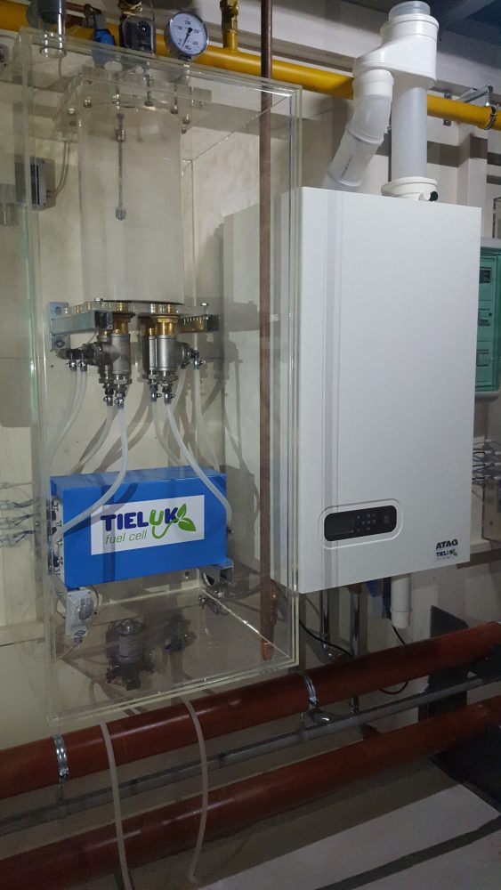 De installatie in Lukkes’ eigen bedrijfspand draait al jaren probleemloos. Hij besloot de techniek in alle stilte te verbeteren; een jaar geleden kreeg het kersverse bedrijf Tieluk vorm. Deze zomer werd de eerste proefinstallatie gebouwd. Het openluchtzwembad in Witmarsum wordt sinds die tijd deels verwarmd met waterstofgas. De waterstofopwekker en mixer heeft een opwekcapaciteit van 500 kW aan waterstofgas.