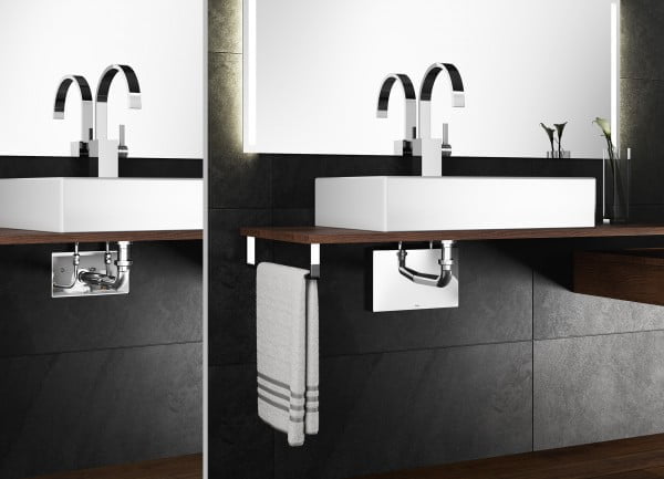Een blik onder een wastafel is alles behalve een feest. Slordig verwerkte aansluitingen, sifons als stofnesten en andere lelijkheid onder de noemer: ‘wat niet ziet of weet, wat niet deert’. Dat kan anders dachten ze bij Viega. Het bedrijf ontwikkelde een inbouw-aansluitbox voor alle voor een wastafel benodigde installaties. Aansluitingen, sifon en hoekstopkranen zijn verwerkt in een kunststof behuizing die in de wand geplaatst kan worden. Een verchroomde afdekplaat zorgt voor een nette afwerking, maar maakt de installatie altijd bereikbaar. Vooral ideaal voor utiliteitstoepassingen. Bijkomend voordeel is dat de wastafel toegankelijker wordt voor bijvoorbeeld rolstoelgebruikers.