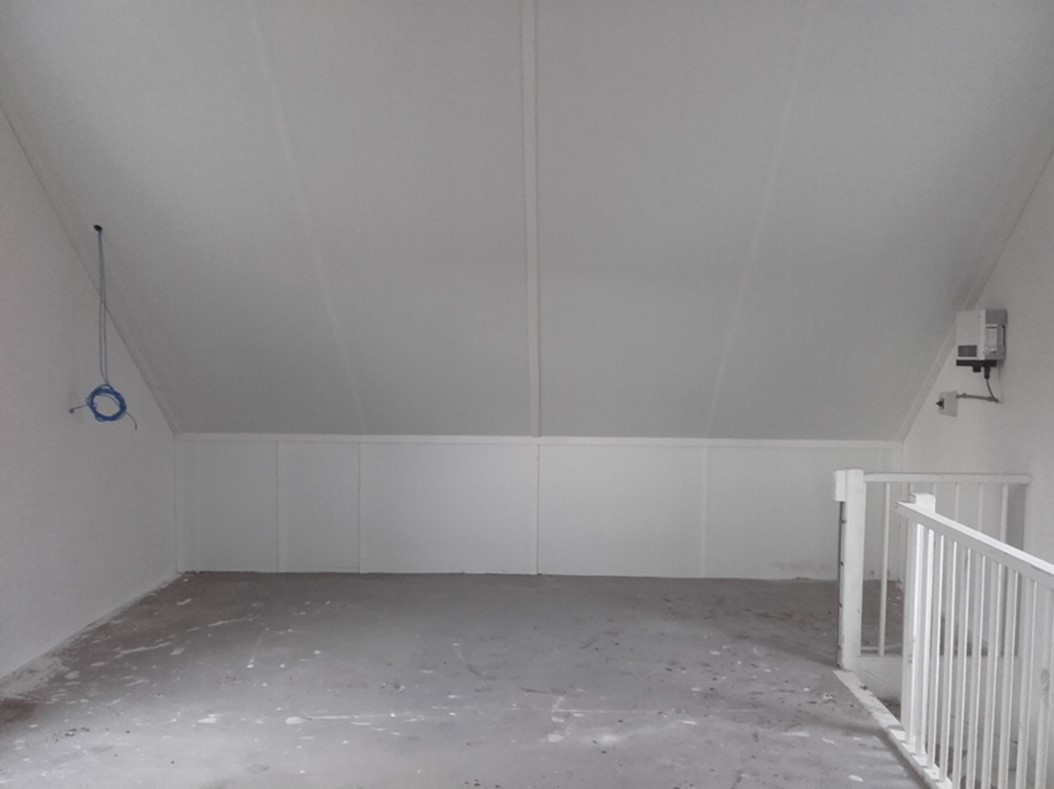 Scheidingschotje? Of je gaat terug het dak op en voert de bekabeling onder de dakpannen door. Kunnen natuurlijk wel de panelen in de weg zitten