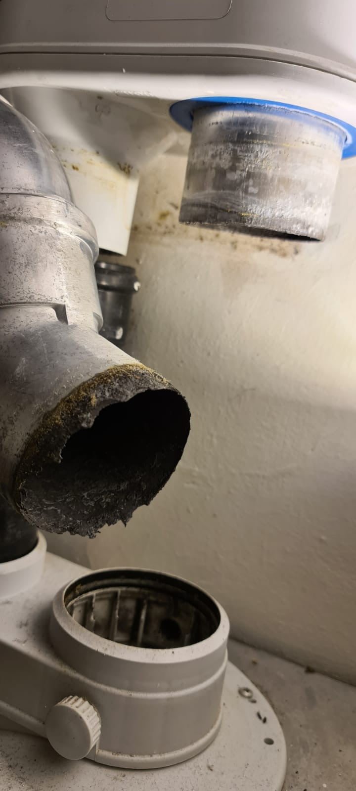 als hier een rvs afvoer buis was gebruikt zou dit niet zijn voorgevallen, immers bij HR ketels gaat in het condenswater, dat ook op de wand van de afvoerbuis ontstaat, zwavel opgenomen worden en dat zwavel vreet langzaam het aluminium weg, wat bij rvs niet zal gebeuren.