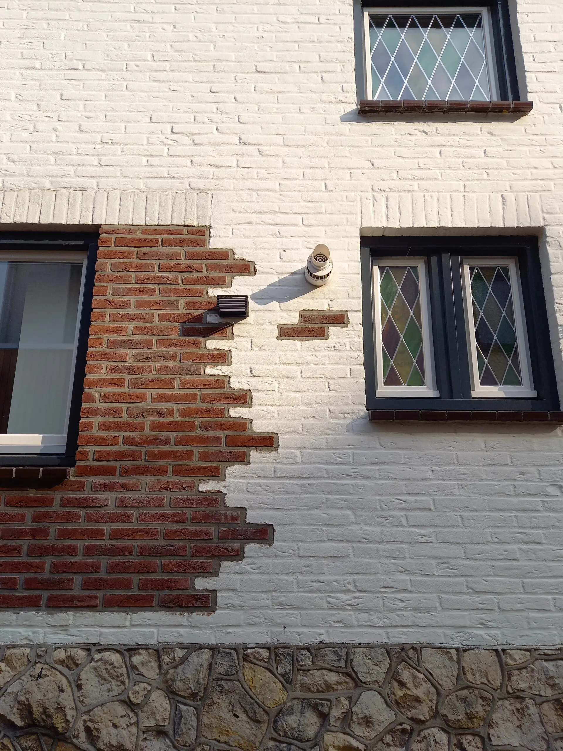 In deze situatie is er een nieuwe ketel geplaatst zonder ook maar iets te vernieuwen of te veranderen. Oude huurketel was verdronken en afgeschreven door timmerman! Deze rookgas is gedeeltelijk in de spouw verwerkt, nadat de schoorsteen enkele jaren geleden gesloopt is. Door Burgerhout is er een balkondoorvoer geadviseerd om de rook in de tuin te laten waaien zodat er minder overlast is van de witte pluim. Helaas, advies mocht niet baten.