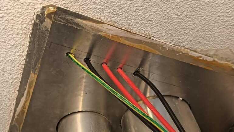 Netjes? Dat is dit niet. Het is volgens de NEN1010 niet toegestaan om bekabeling te voeren langs scherpe randen. Er is kans op beschadiging. Hiervoor gebruik je bijvoorbeeld een mantelbuis of doorvoortule. Er is risico dat er 1000v op de plaat en andere metalen delen komt te staan. En er is kans op een vlamboog wat brand kan veroorzaken.