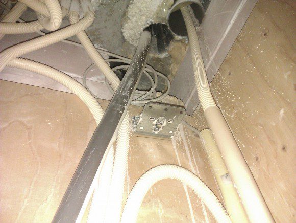 Bij nader onderzoek bleek dat er tussen de bovenzijde van de schachtwand achter de meterkast en het plafond een metselblok ontbreekt. Deze schachtwand en doorvoeren horen brandwerend en dicht te zijn.