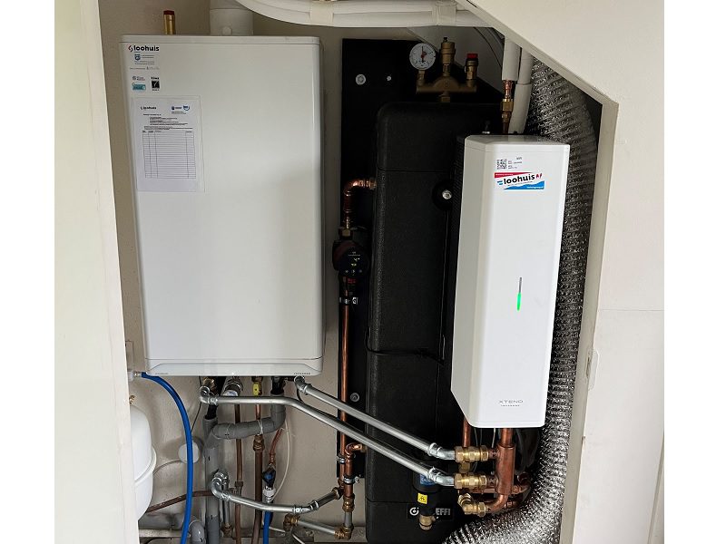 Calculator Marcel Korblet ging met deze case aan de slag voor de Overijsselse installateur, die de vraag naar hybrides ziet toenemen bij particulieren en woningbouwverenigingen. Loohuis plaatst inmiddels wekelijks enkele toestellen. Inspiratie voor Korblet was het setje dat collega-installateur Kemkens samen met Rensa uitdokterde. Ook Loohuis wilde een hydraulische scheiding standaardiseren, want warmtepomp moet zo efficiënt mogelijk draaien tegen een zo laag mogelijk energieverbruik. Maar hij zag meer brood in een wandhangende variant.